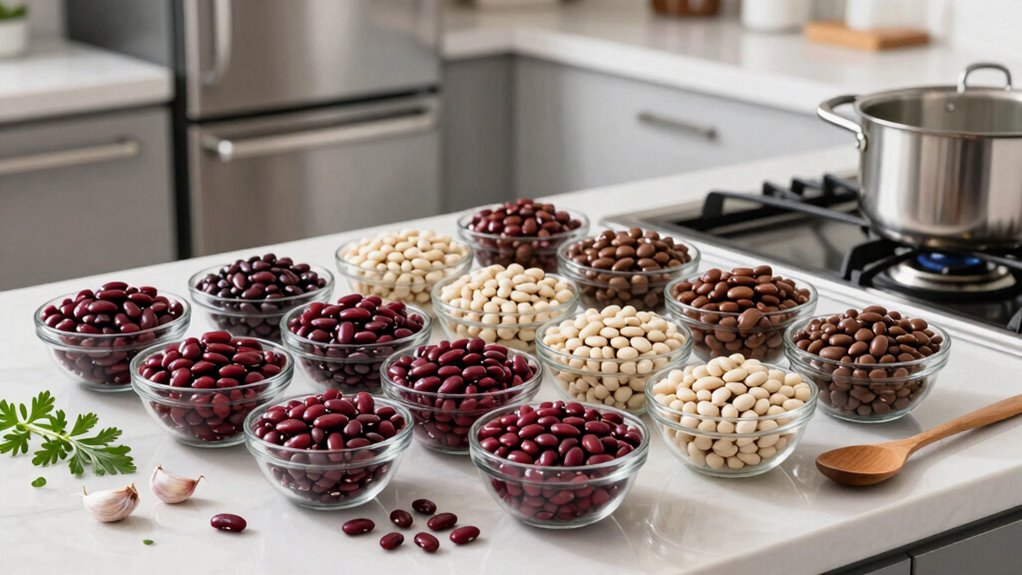 To batch-cook beans like a pro, start by soaking or rinsing them, then cook with aromatics like garlic or onions to boost flavor. Use airtight containers to store portions in the fridge for up to five days or freeze for longer storage, laying bags flat to save space. Reheat gently with added liquid and incorporate your beans into salads, stews, or tacos for quick meals. Keep these tips in mind, and you’ll be a bean-prep master in no time!