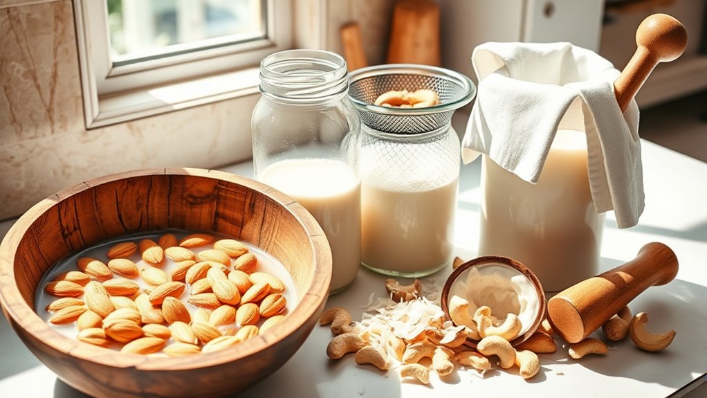 The process itself is straightforward. You soak your chosen nuts, seeds, or grains, then blend them with water, strain out the solids, and enjoy. This simplicity means you can experiment with different ingredients like hemp seeds, cashews, or rice to find your perfect blend. Each offers unique nutritional benefits—hemp seeds are rich in omega-3 fatty acids, while rice provides a mild, easily digestible option. You can also tailor the sweetness and flavor by adding natural sweeteners like dates or vanilla, making your homemade plant milk a personalized, wholesome beverage.
