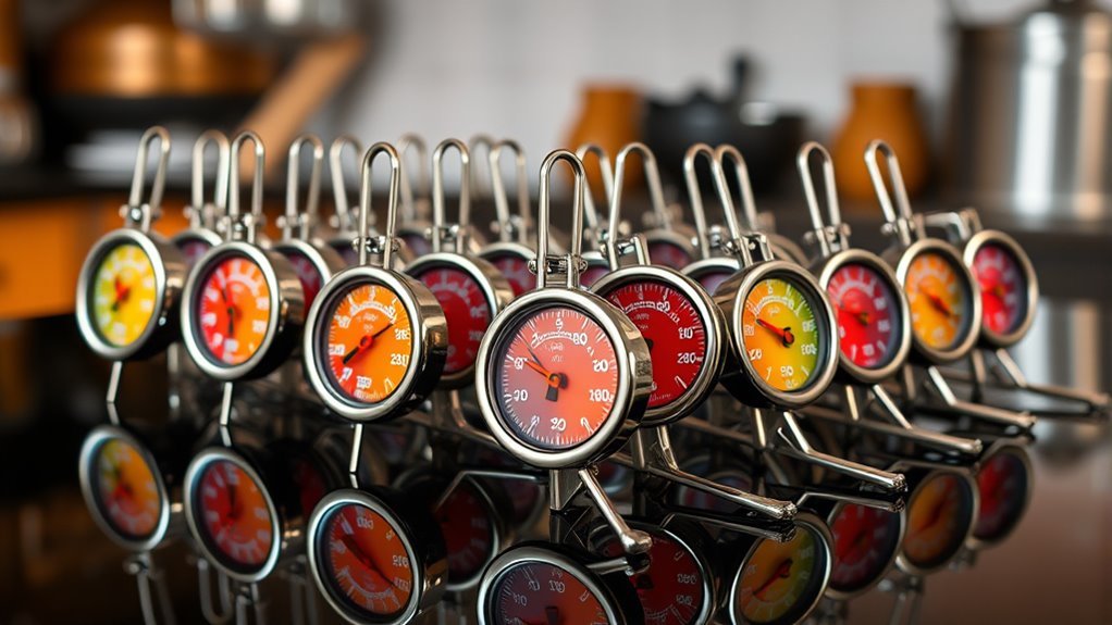 In my experience, choosing the right clip-on candy thermometer makes all the difference—especially when it comes to perfecting those caramel and chocolate treats. Did you know that over 80% of home bakers find that using a reliable thermometer improves their results? With options like waterproof designs and easy clips, you can confidently master your confections. So go ahead, pick one that suits your needs, and enjoy consistently delicious, perfectly tempered sweets every time!