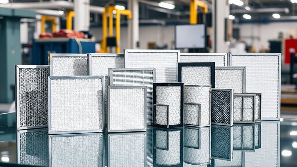 Think of certifications as the fingerprints of quality—trustworthy seals you must seek. When choosing commercial HEPA filters, look for certifications like UL, ISO 9001, and HEPA standards themselves, which verify their efficiency and safety. These badges ensure you’re investing in filters that perform reliably, filtering out 99.97% of particles. Don’t settle for less—certifications are your guarantee of top-tier filtration that truly protects your space.