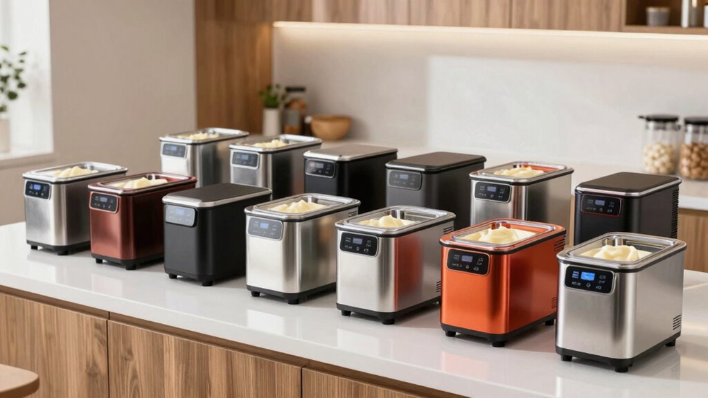 If you’re exploring the 15 best compressor ice cream makers under $1000 in 2026, I’ve got you covered. These models offer quick, no-pre-freeze operation, making it easier to whip up ice cream, gelato, or sorbet at home. From versatile options with LCD displays to larger capacity units, there’s something for every kitchen. Keep going, and I’ll share detailed insights to help you choose the perfect machine for your needs.