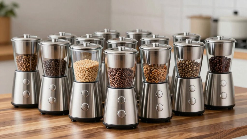 If you’re looking for the 15 best electric grain grinders made of stainless steel for 2026, I’ve found top models that combine power, durability, and safety. These include high-speed grinders with adjustable fineness, large capacity options, and commercial-grade construction. They’re perfect for grinding grains, spices, and herbs efficiently. Want to know which ones stand out and what features matter most? Keep exploring, and you’ll find all the details to make an informed choice.
