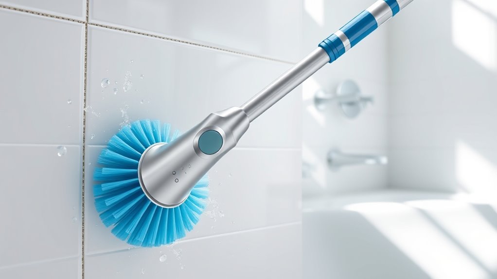 Yes, electric spin scrubbers can often be used underwater or in wet conditions, but it’s essential to verify the manufacturer’s instructions first. Many are waterproof or water-resistant, making them perfect for bathroom tiles, tubs, or sinks. I always make sure I follow safety guidelines, avoid submerging the motor, and keep the battery compartment dry. Proper use extends the lifespan and keeps my cleaning routine safe and effective.
