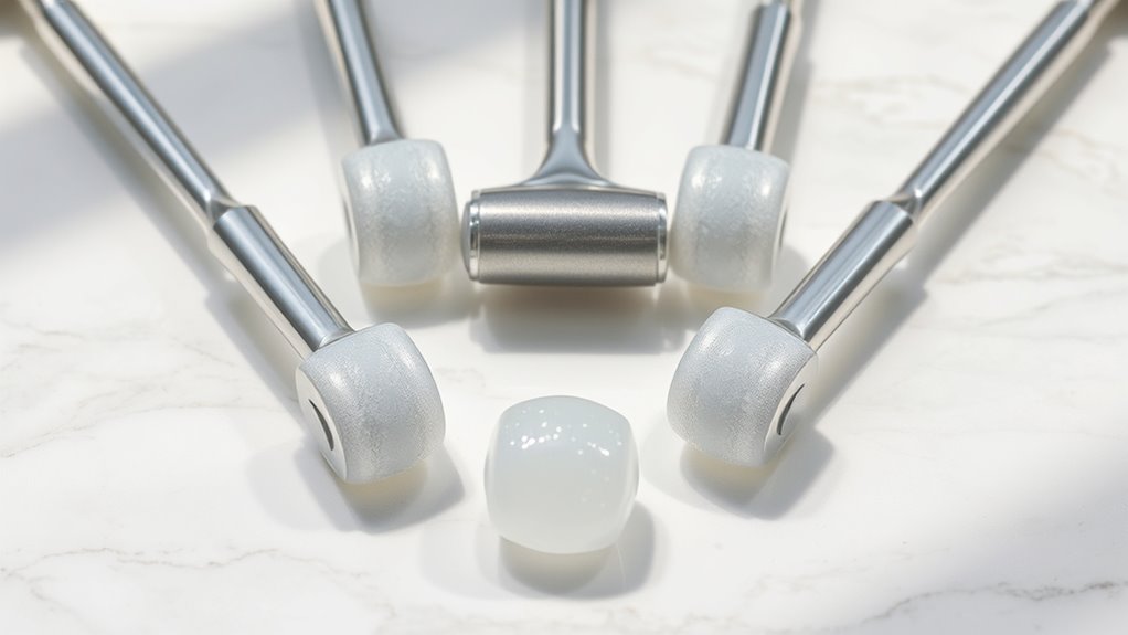 An ergonomic design with a comfortable grip is essential for easy handling during facial massages. It allows me to maneuver the roller smoothly without slipping, making the experience more enjoyable. A smooth-gliding roller minimizes skin tugging and helps me apply even pressure effortlessly. I prefer lightweight ice rollers because they reduce hand fatigue during longer sessions, so I can enjoy the benefits without discomfort. Features like textured or contoured surfaces enhance the massage, providing targeted relief and increased effectiveness. Additionally, easy-to-clean materials and simple assembly make maintenance straightforward, saving me time and effort. Overall, a well-designed ice roller with these ease-of-use features guarantees my skincare routine is both effective and comfortable.