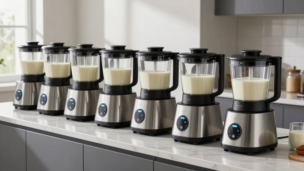 If you’re thinking about making oat milk at home, you’re not alone—over 60% of households now prefer plant-based alternatives. With so many great nut milk makers available, finding the right one can transform your daily routine. Remember, choosing a model with auto-clean, multiple functions, and a generous capacity can make all the difference. Invest in a quality machine, and you’ll enjoy fresh, creamy oat milk anytime—it’s a small upgrade that makes a big impact.