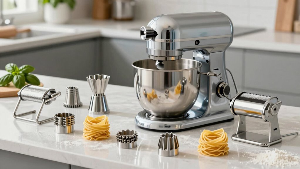 Choosing the right pasta attachment is like picking the perfect brush to paint your culinary masterpiece. It transforms your stand mixer into a gateway to Italy’s rich flavors and traditions. With the right tool, you hold the power to craft endless pasta shapes, turning simple ingredients into art. So, select your attachment wisely—because in your kitchen, you’re the artist, and every dish is a canvas waiting to come alive.