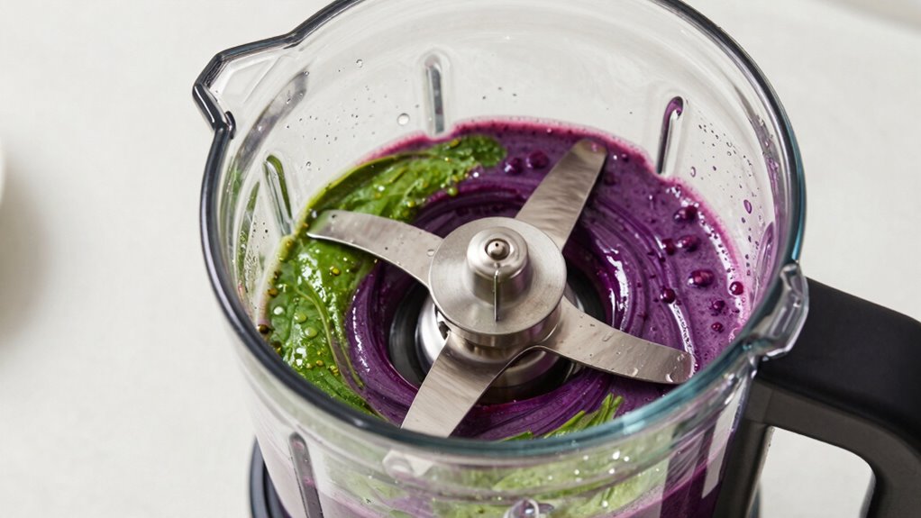 Ultimately, mastering your blender’s high power settings involves understanding how ingredients behave and keeping your machine clean. Adjusting fruit pairing based on texture and toughness, along with diligent cleaning, helps you avoid common pitfalls. When you do this, your smoothies will consistently come out with the ideal texture—smooth, rich, and free of lumps—making every blend a satisfying experience.