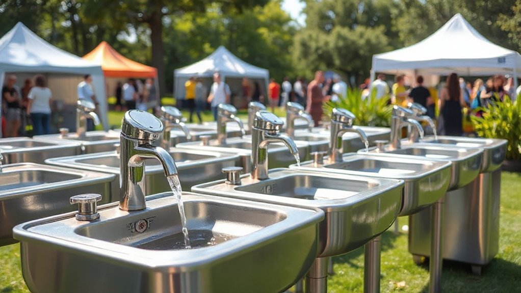 Choosing the right portable handwashing sink is like tending a garden—you need the right tools to nurture cleanliness and comfort. Each option I’ve highlighted is a seed you can plant for your event’s success, growing into a seamless experience that keeps everyone healthy and happy. Remember, the right sink isn’t just equipment; it’s the foundation of trust and hygiene—so choose wisely, and let your event flourish like a well-tended garden in full bloom.