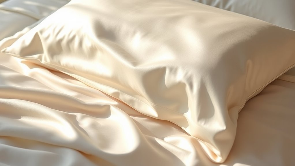 Silk pillowcases are superior for skin benefits compared to cotton or polyester. I’ve noticed my skin stays hydrated and less irritated because silk reduces friction and absorbs less moisture. Unlike cotton, silk’s smooth surface minimizes wrinkles and breakouts. Plus, it helps keep my skin cool and breathable overnight. Overall, silk offers a luxurious feel while promoting healthier, more radiant skin, making it my top choice for pillowcases.