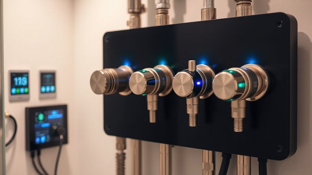 Choosing a smart water shutoff valve that integrates smoothly with your existing home ecosystem is essential for a seamless smart home experience. Compatibility with platforms like Apple HomeKit, Google Home, and Amazon Alexa ensures you can control your valve effortlessly through familiar apps or voice commands. Support for protocols such as Zigbee, Z-Wave, or Matter-over-bridge provides reliable communication with other smart devices, making automation more dependable. Integration with your current routines allows for automated actions, like shutting off water when a leak is detected, enhancing safety and convenience. Additionally, some valves connect to multiple systems simultaneously, offering greater flexibility and redundancy. This seamless integration helps create a unified, intuitive smart home environment, giving you peace of mind and simplified control.