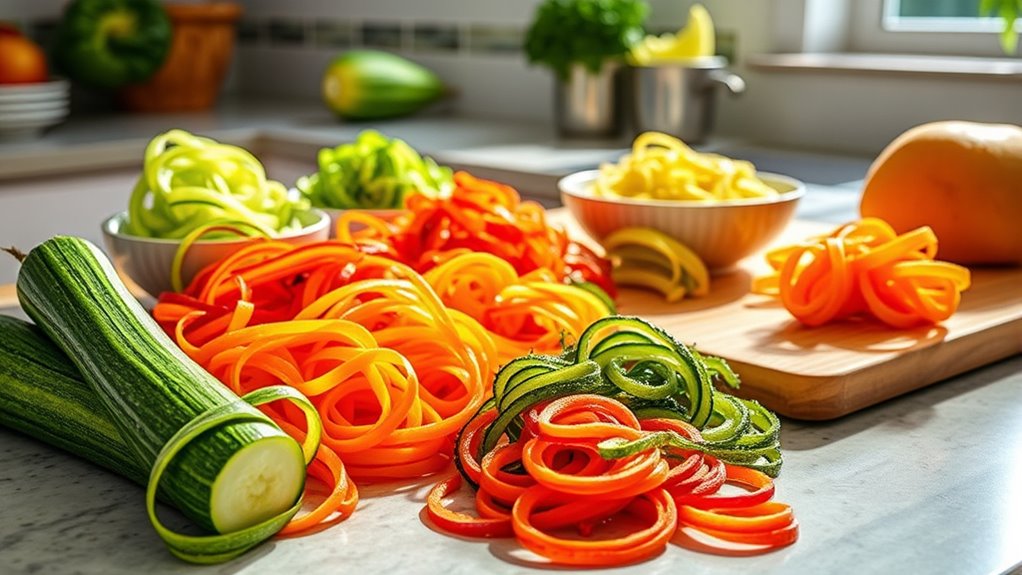 Think of a spiralizer as a magic wand that transforms vegetables into vibrant, nutritious spirals. It actually helps retain more nutrients than traditional slicing because it minimizes oxidation and preserves fiber. When I use a spiralizer, I notice the veggies stay fresher and crunchier longer, making my meals healthier. So yes, spiralizers do a better job at keeping nutrients intact, turning simple vegetables into colorful, nutrient-packed masterpieces.