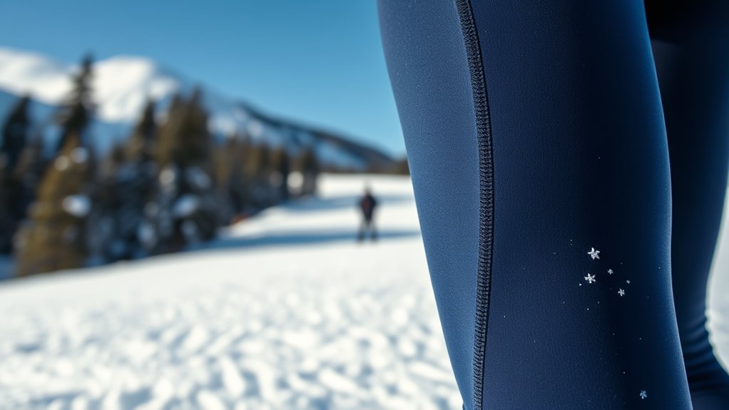 Moisture-wicking thermal underwear plays a crucial role in keeping you dry and comfortable during intense skiing sessions. It draws sweat away from your skin, preventing dampness that can lead to chilliness. Fabrics with advanced moisture management use fibers that quickly disperse moisture, helping you stay dry and warm. Proper moisture-wicking properties also reduce skin irritation and chafing by minimizing prolonged exposure to sweat and dampness. Many high-performance options incorporate breathable meshes or ventilation zones to boost airflow and evaporation, enhancing overall comfort. By efficiently managing moisture, these thermal underwear maintain insulation and warmth, even during strenuous activity. Choosing fabrics with excellent moisture-wicking ability ensures you stay dry, comfortable, and focused on enjoying your time on the slopes.