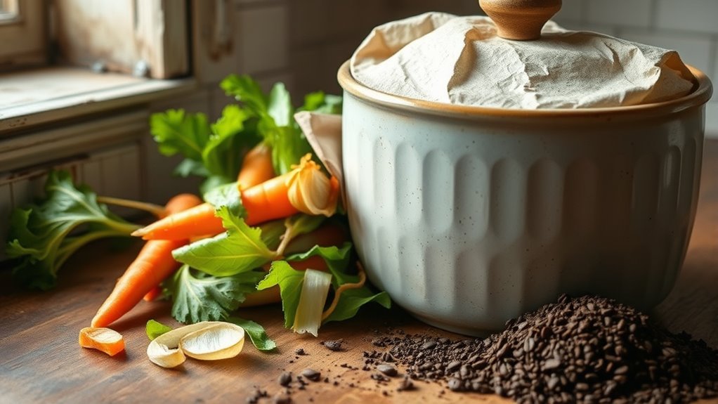 Now that you’ve started composting your kitchen scraps, you’re nurturing the earth like a caring gardener tending to delicate seedlings. Every peel and leftover becomes a tiny treasure that transforms into rich, nourishing soil, whispering promises of future growth. Think of your compost bin as a magic pot—feeding nature’s cycle with your everyday waste. With each turn, you’re not just reducing trash; you’re planting seeds of sustainability, making the world a little greener, one scrap at a time.