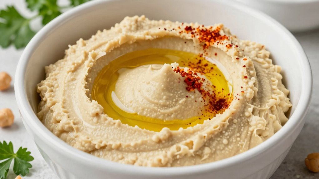 Think of chilling hummus as giving it a well-deserved rest, like a painter stepping back to admire their work. Yes, chilling enhances flavor by allowing spices to meld and deepening the overall taste. It also slightly modifies the texture, making it creamier and more cohesive. So, for the best flavor enhancement and smooth texture, you should chill your hummus before serving—it’s the secret to truly indulgent bites.