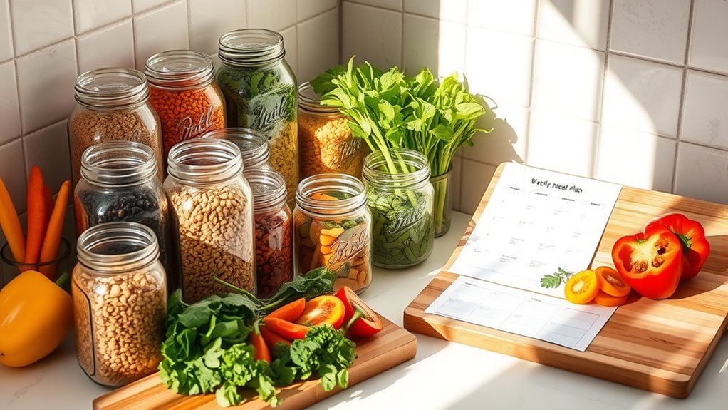 Another essential aspect of meal planning is shopping list efficiency. When you plan your meals ahead, you can create a focused shopping list that includes only what you need. This prevents impulse buys and reduces the chances of purchasing items that won’t get used. Organize your list by categories—produce, dairy, grains, and proteins—to streamline your shopping trips. By sticking to your list, you minimize the risk of buying excess food that might spoil before you get a chance to use it. This approach not only cuts down on waste but also saves you money. Plus, it makes grocery shopping quicker and less stressful, especially when you’re busy or tired. When you combine shopping list efficiency with thoughtful leftovers preservation, you’re well on your way to a more sustainable and economical kitchen routine.