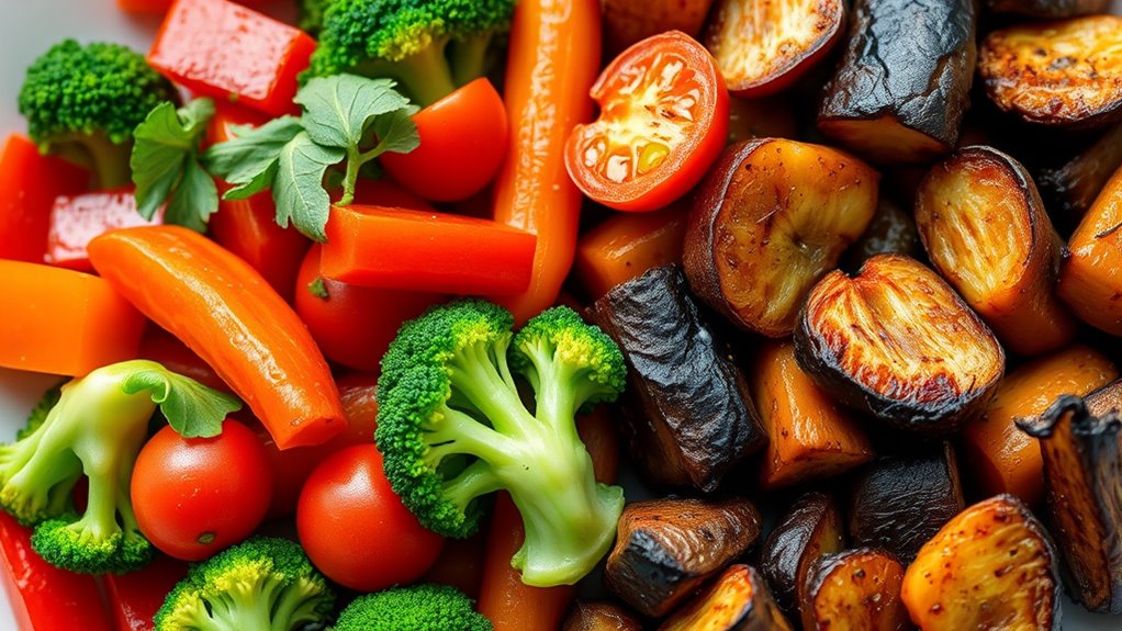 Cooking methods can enhance mineral absorption in vegetables by breaking down cell walls, making nutrients more accessible. For example, steaming or boiling boosts the bioavailability of minerals like iron and calcium, whereas overcooking may cause mineral loss. You should choose cooking methods that preserve nutrients, such as steaming or sautéing, to maximize mineral absorption and enjoy the full nutritional benefits of your vegetables.