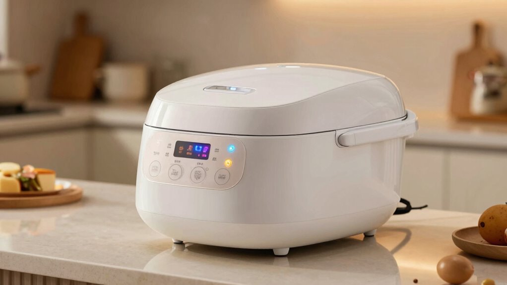 Ever wonder how your rice cooker keeps rice warm after cooking, or how the delay start feature allows you to plan ahead? The keep warm function maintains just the right temperature to prevent rice from drying out, while conserving energy. It gently simmers rice, helping flavor enhancement by preserving aroma and taste. This setting is ideal for late eaters or when you need to prepare meals in advance.