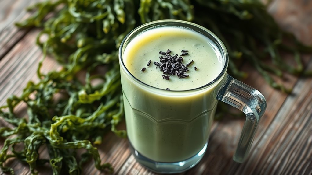 You can add sea moss gel to both hot and cold smoothies, but consider temperature compatibility and flavor impact. It blends well into cold smoothies without clumping, maintaining its gel-like consistency. When adding to hot smoothies, do so after cooking or blending, as high heat may affect its nutrients. Keep in mind that sea moss has a mild, oceany flavor that might influence your smoothie’s taste, so adjust other ingredients accordingly.