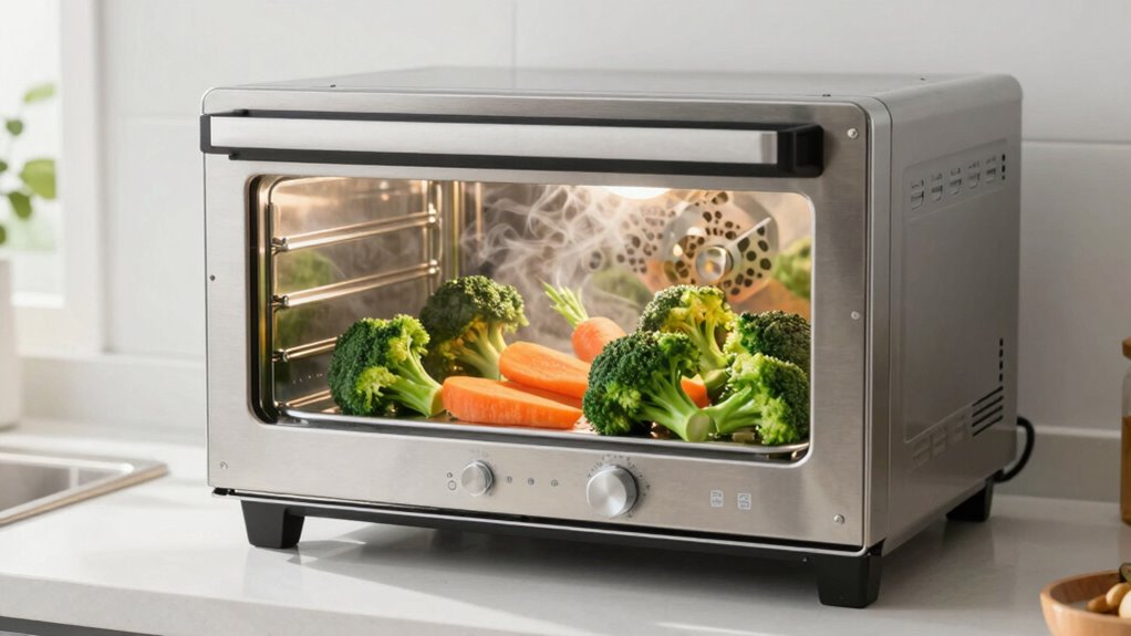 Mastering your countertop steam oven transforms humble vegetables into culinary gems. With proper setup, timing, and a touch of creativity, you’ll find that steamed veggies aren’t just nutritious—they’re irresistibly flavorful and perfectly textured. Think of your oven as a silent conductor, guiding each vegetable to its ideal harmony. So, embrace the steam, and let your kitchen become a stage where every bite sings with freshness and finesse. After all, isn’t that what great cooking is all about?